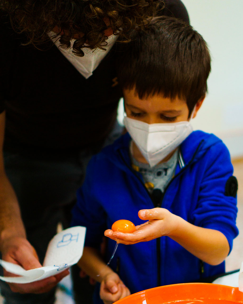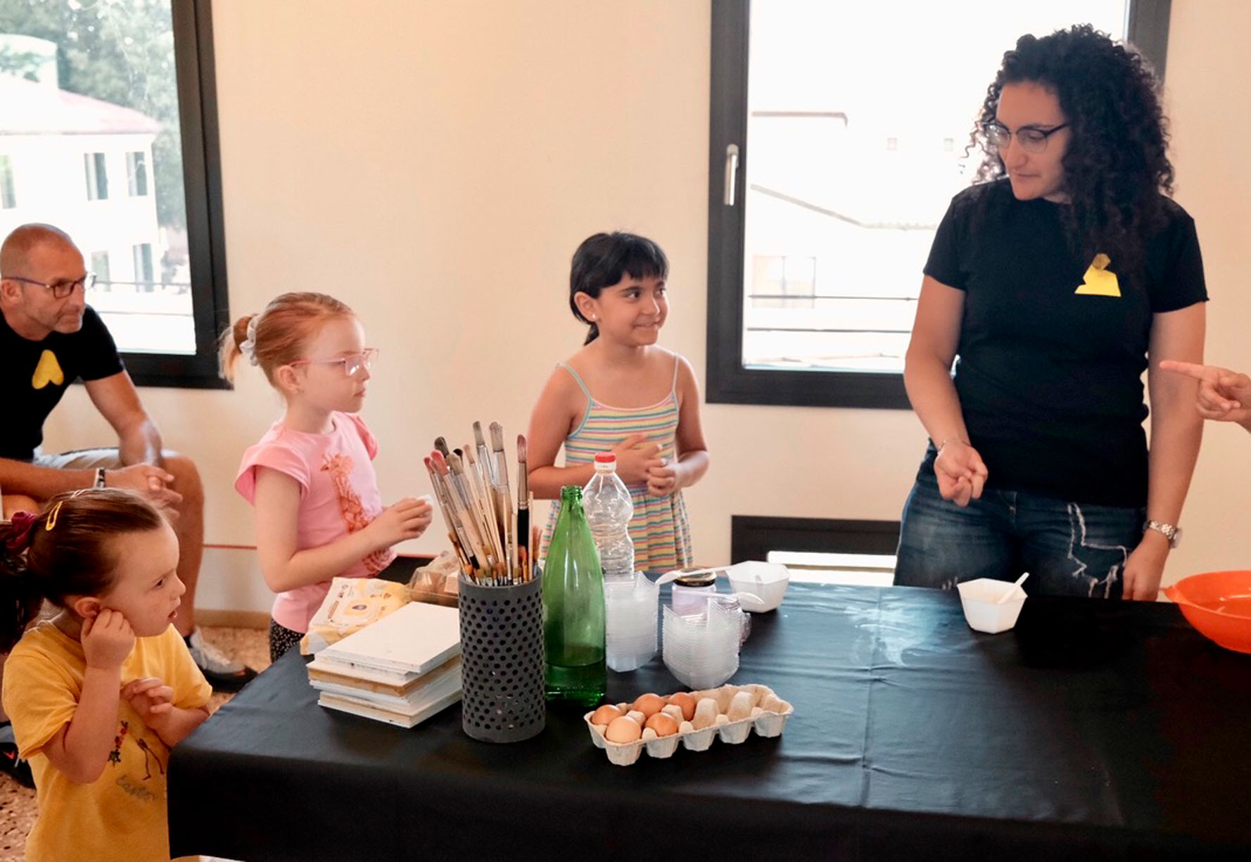 I partecipanti, insieme ai nostri volontari, si sono cimentati nella preparazione della tempera all’uovo, una delle più antiche ed efficaci tecniche pittoriche nella storia dell’arte.